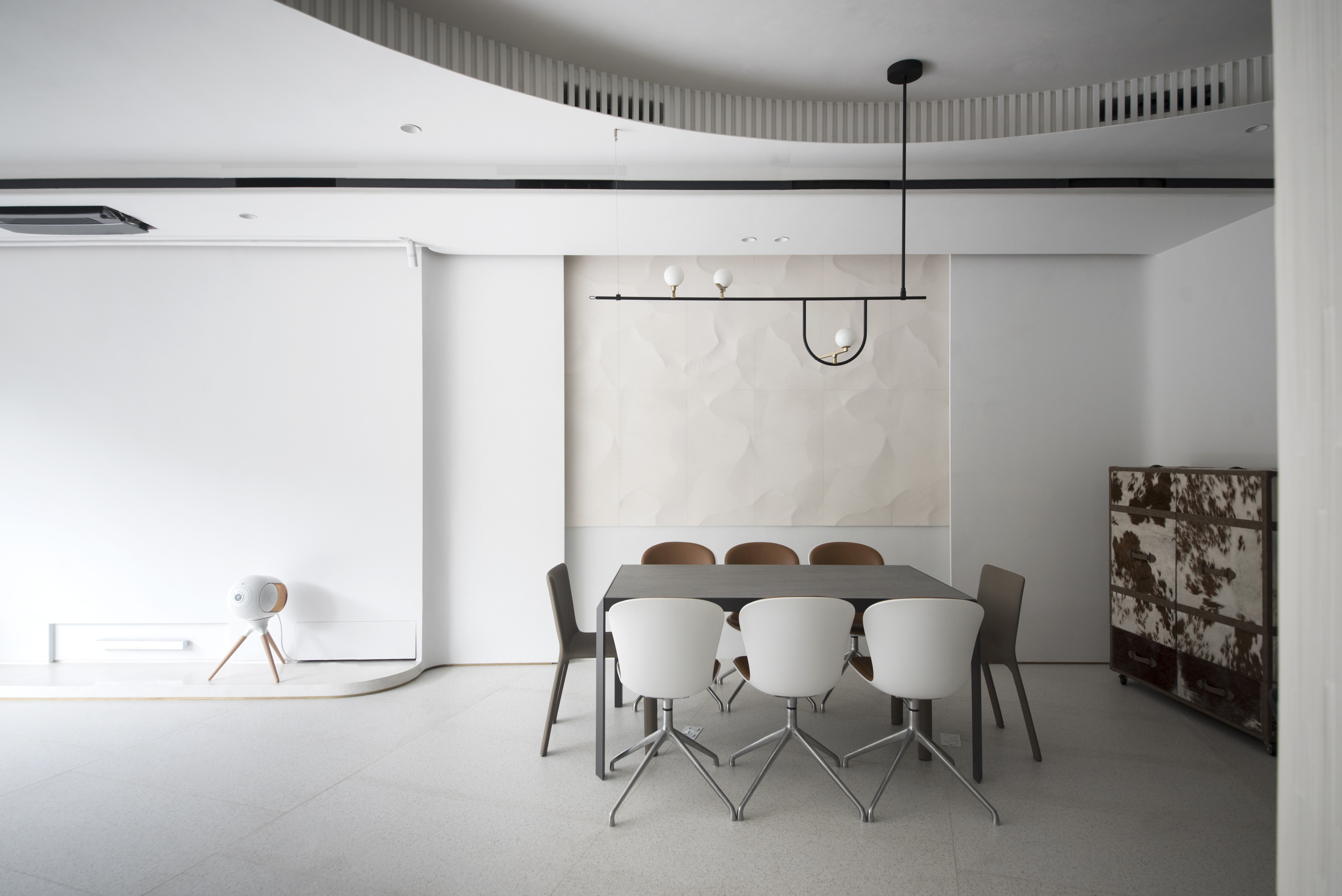 Our client desires that the transformation of the apartment could bring about a home versatile for the life of their young daughter and encourage communications between family members. The planning of the project therefore focuses on the natural flow of spatial landscapes by shaping white contours in various forms of materials to compose the everyday furniture and interior archetypes, so that the family can indulge in a space that filters the hustle of the city.